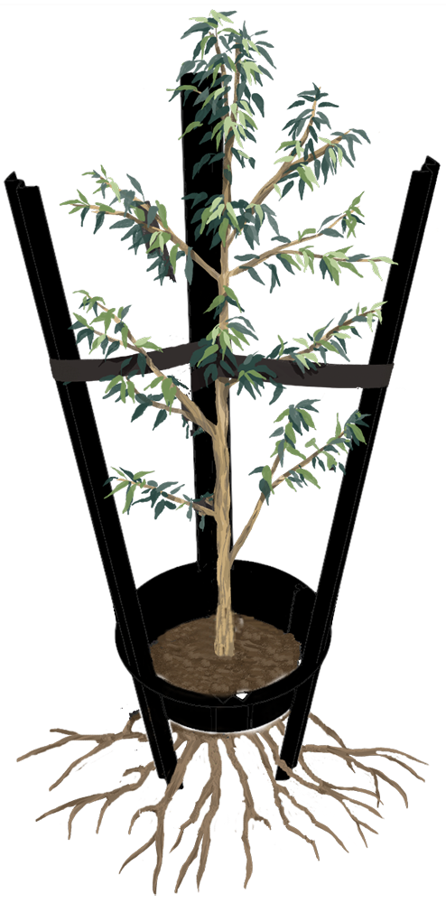 Instead of restricting growth with rigid stakes, Tree Coach’s Growflex™ technology allows trees to be tested and strengthened by the wind, encouraging better caliper, stem taper and consequential root development.